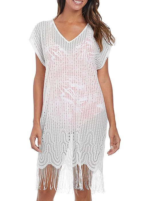 Antheia is a wonderful lightweight design that perfectly shields you from the sun. This tunic is crocheted, so it lets the breeze through and keeps you cool, but has enough coverage to absorb the worst of the suns rays. This version has a gorgeous grid and wavy pattern combined that makes it eye catching, and the tassels make it more interesting and less plain or conventional.